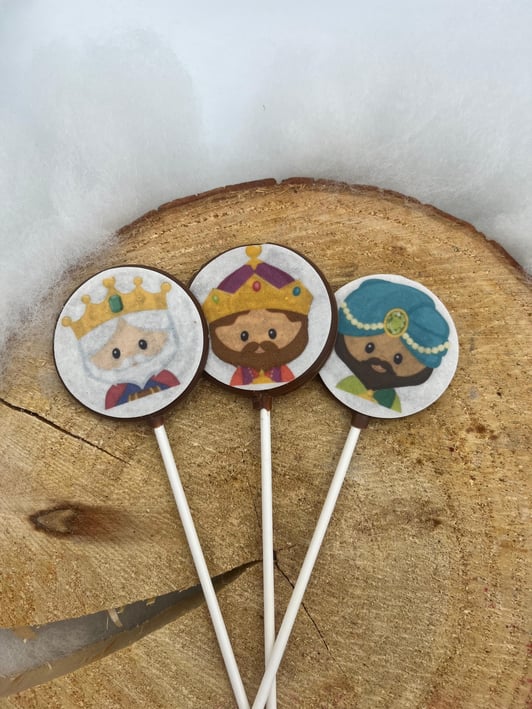 Chocolate lollipop with sugar print.