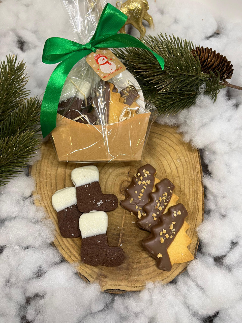 Caja de galletas navidad ( 3 de mantequilla con chocolate y almendra crocanti y 3 de chocolate y coco)